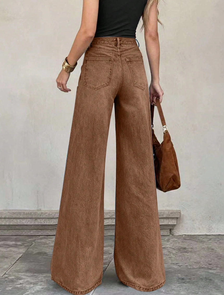 Women’s elegant brown wide-leg jeans